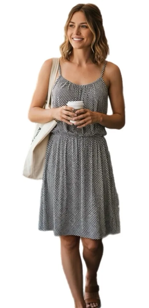 This Ann Taylor LOFT dress is perfect for any summer occasion. The navy and light gray striped patte... Show more