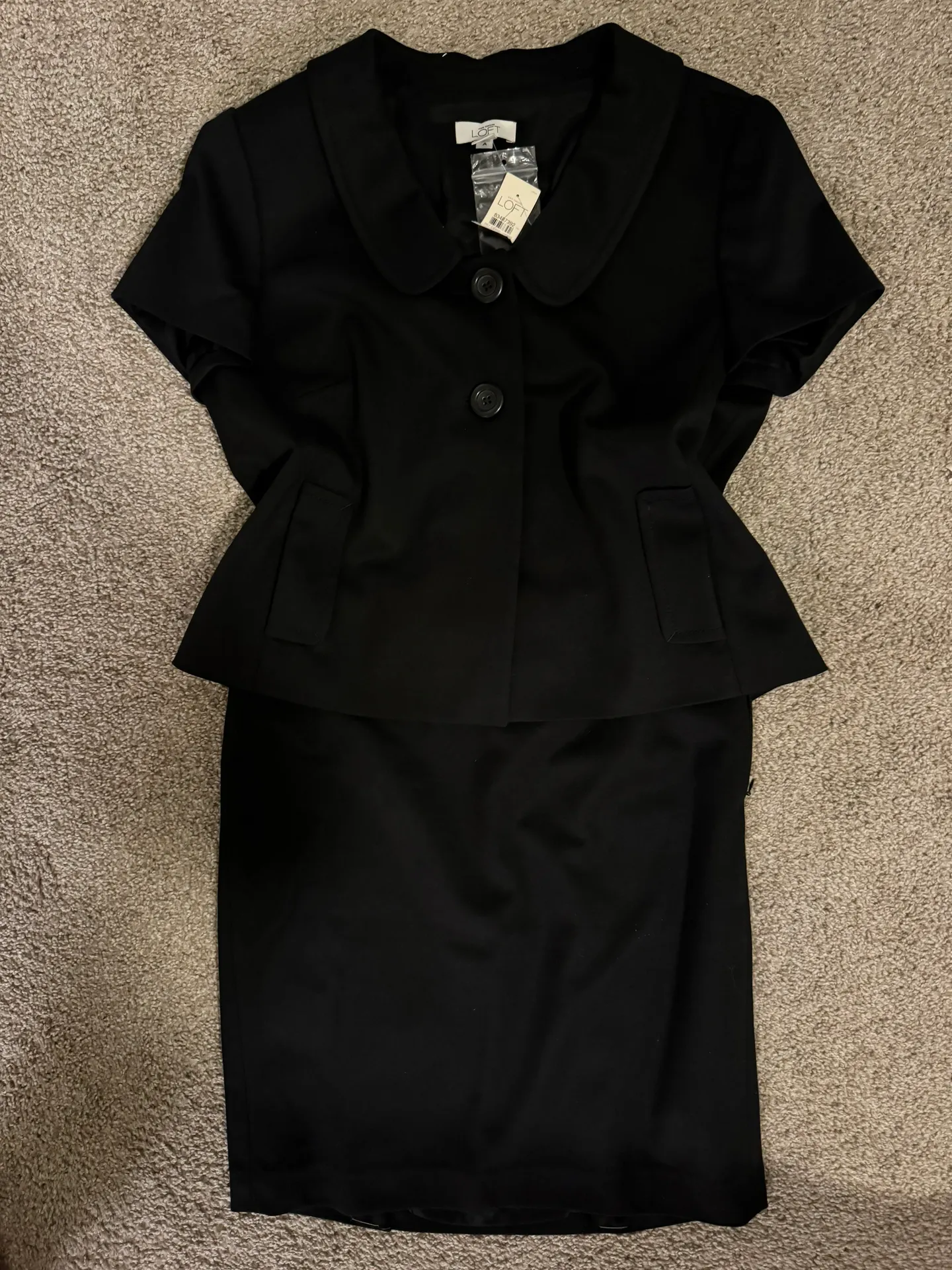 Round neck Ann Taylor LOFT black skirt set. Top is a two-button jacket style too and the bottom is a... Show more