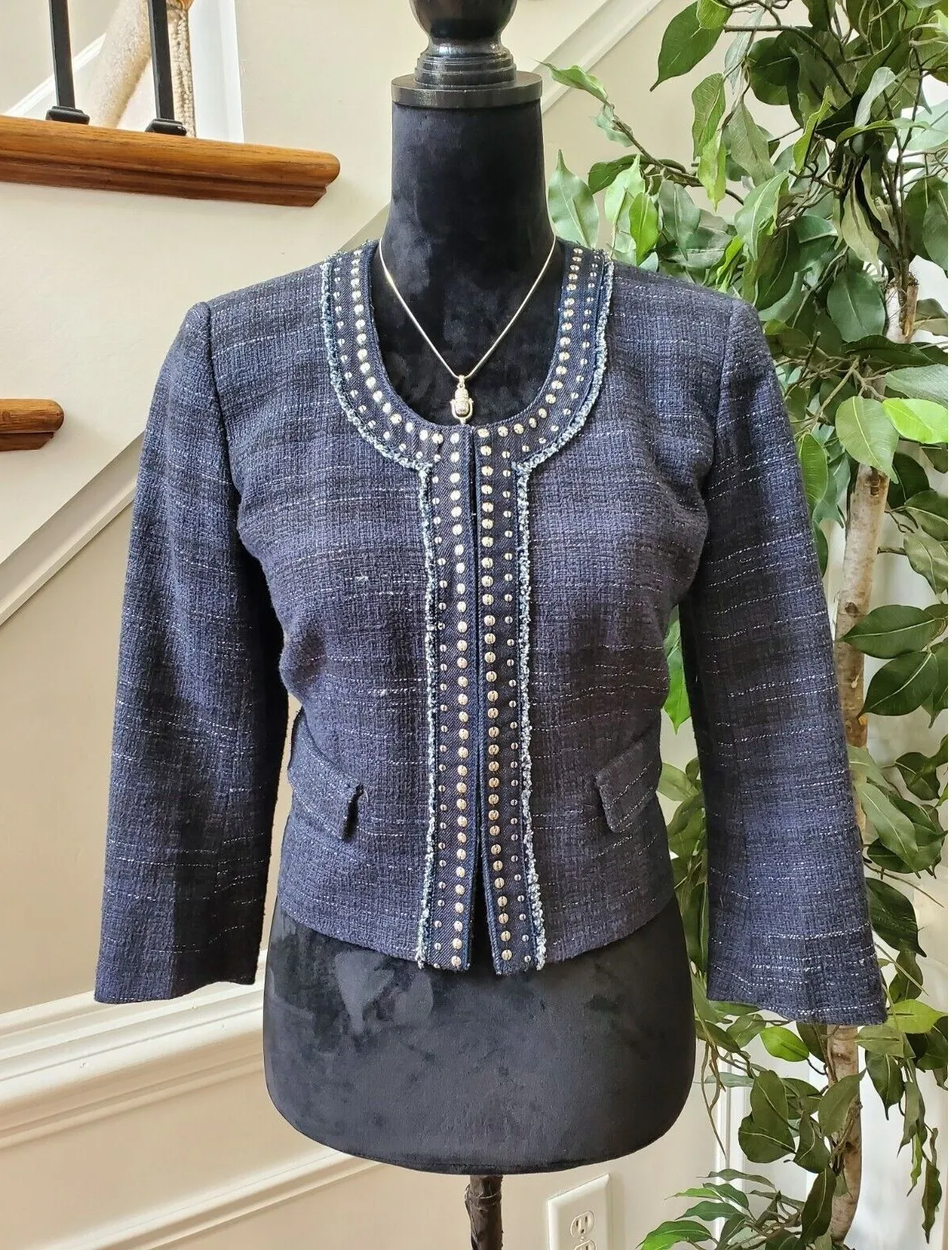 Ann Taylor Loft Women's Blue Cotton Long Sleeve Casual Crome Studded Blazer. Product Detail • Bran... Show more