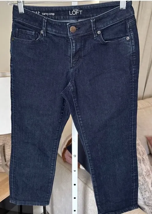 Ann Taylor LOFT women's curvy crop blue jeans in size 4P/27. These jeans feature a solid pattern wit... Show more