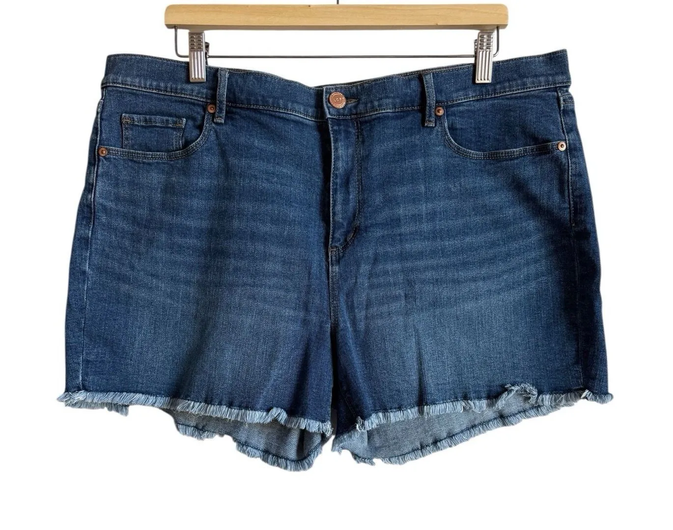 Loft denim shorts with raw hem in great preowned condition. Size 18 Measurement pictures in listin... Show more