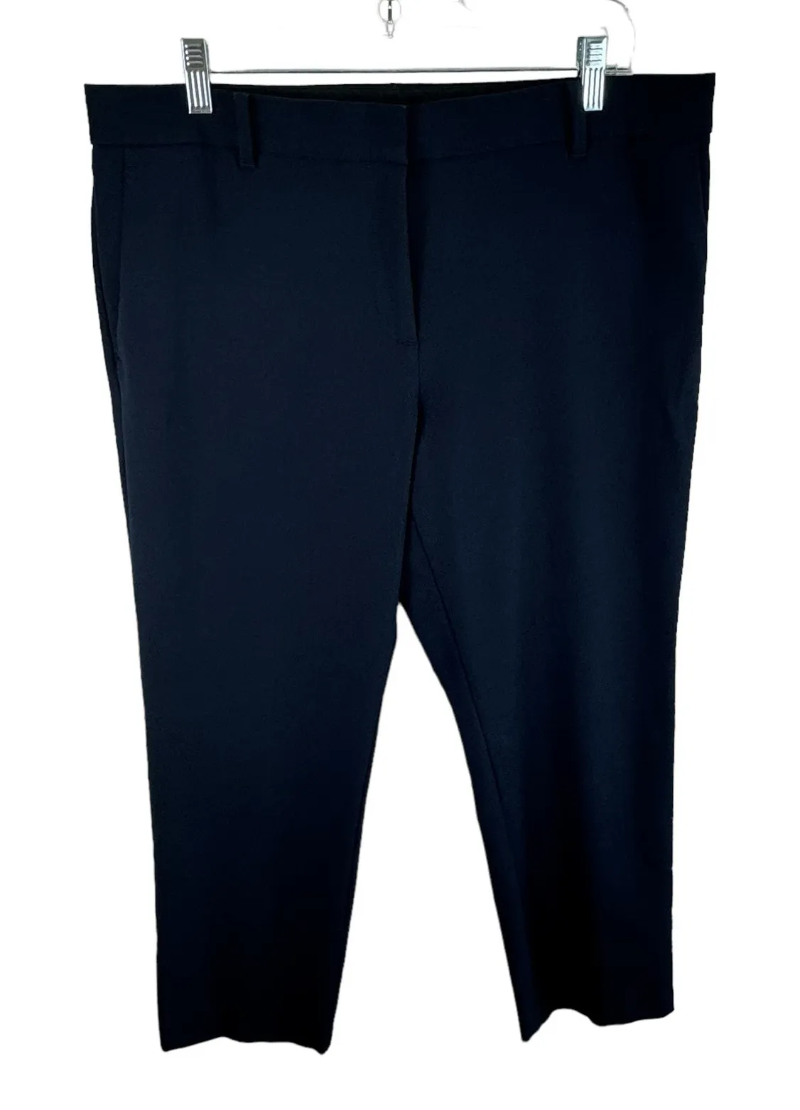 Excellent preowned condition. Navy blue high rise straight leg cropped dress pants. Zipper/hook clos... Show more