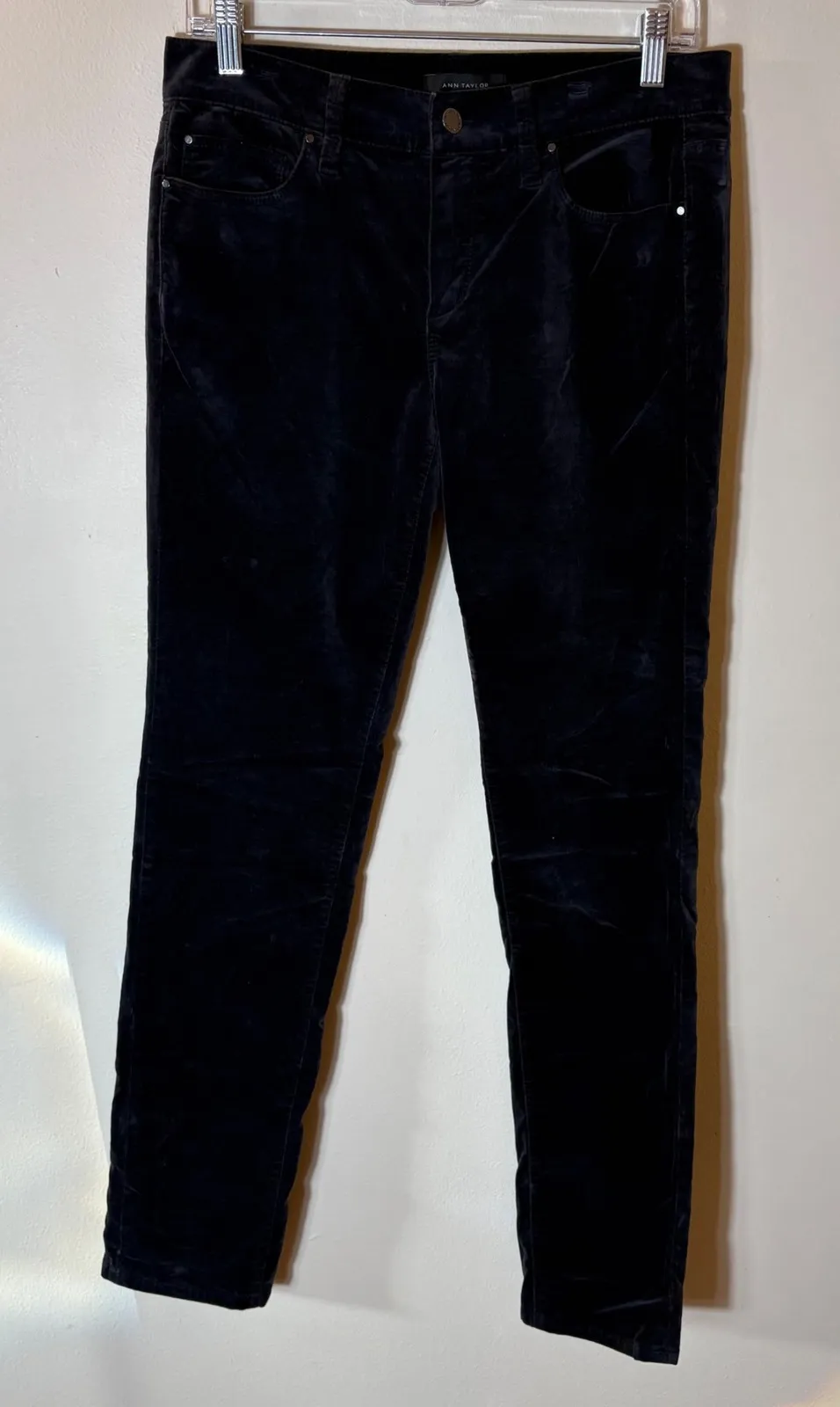 Sophisticated Ann Taylor skinny pants elevate your wardrobe with luxurious navy velvet. The rich te... Show more