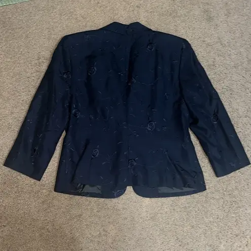 Ann Taylor Vintage Silk Floral Embroidered Suit Set Blazer Trouser Blue 4/6. Blazer features hidden... Show more