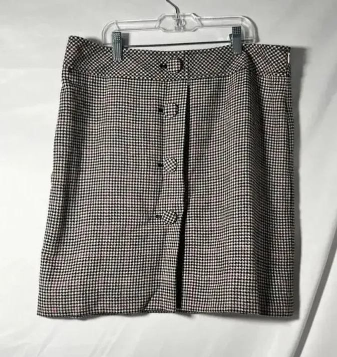 Ann Taylor houndstooth skirt in a plaid print. It is size 10 and has a fitted silhouette. The skirt... Show more