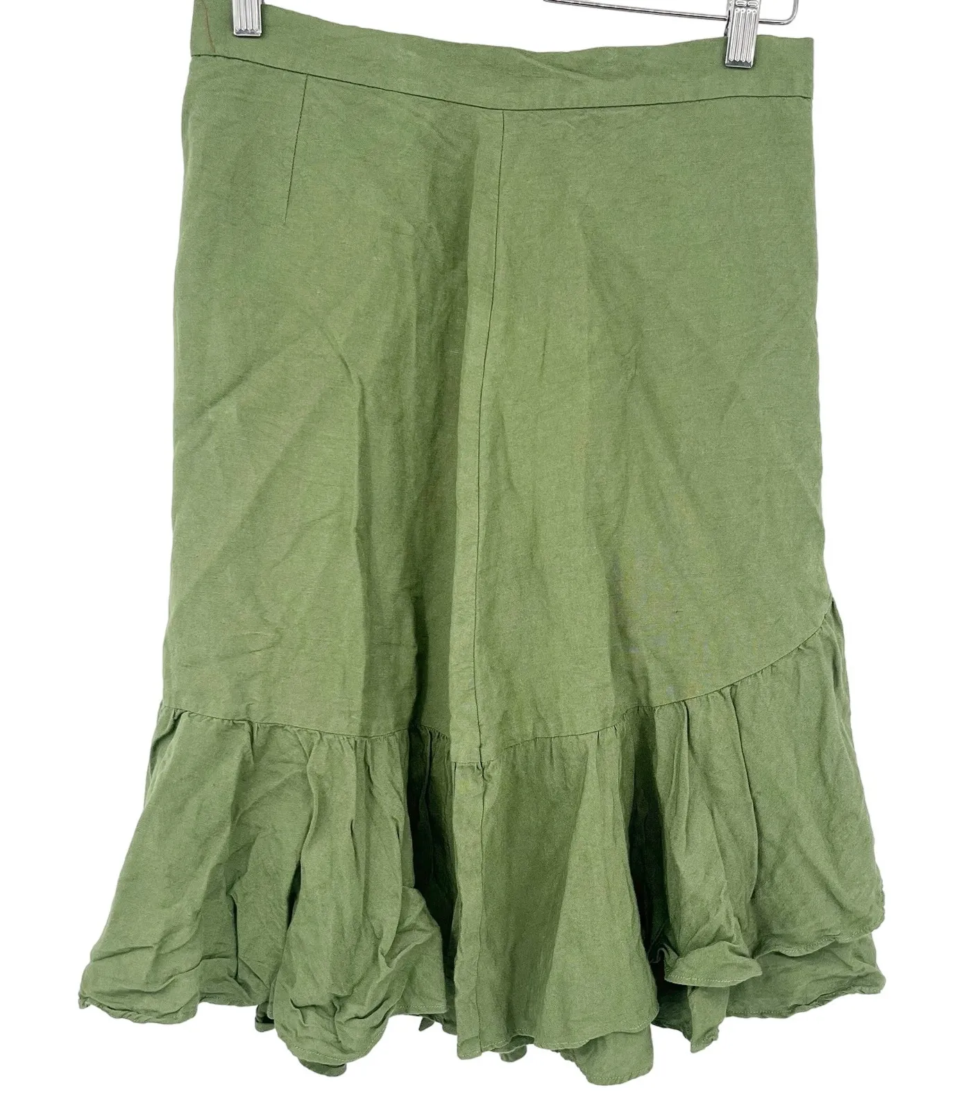 ANN TAYLOR Womens Linen Blend Ruffle Beachy Lagenlook Knee Length Skirt in Green. No size tag, pleas... Show more
