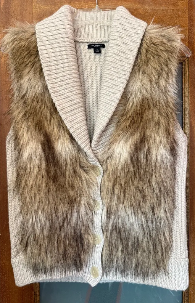 Ann Taylor Women’s Merino Wool Blend Beige Tan Faux Fur Vest Jacket Shawl Size: small Retail: $ 29... Show more