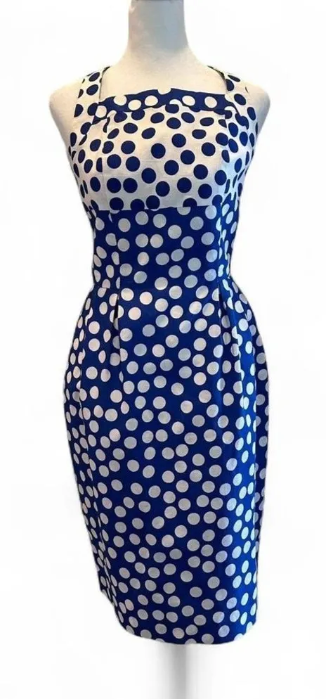 ann tobias blue & white polka dot vintage halter dress size 4 great pre owned condition. cotton/po... Show more