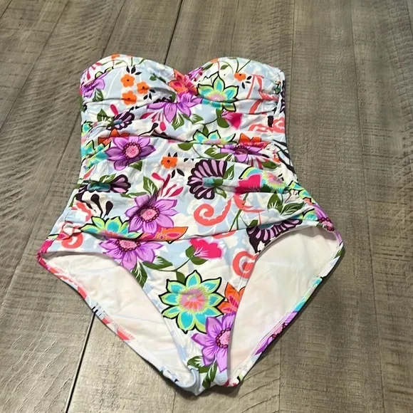 Anne Cole Fleetwood Floral Bandeau One-Piece Swimsuit . Full coverage style is refreshed by the vibr... Show more