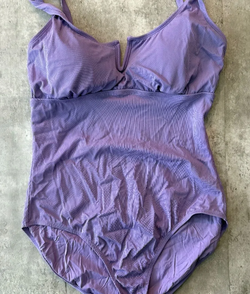 Anne Cole Lavener Purple Ribbed One Piece Tummy Control Swimsuit UPF 50 Size XL - $16 - From Maria