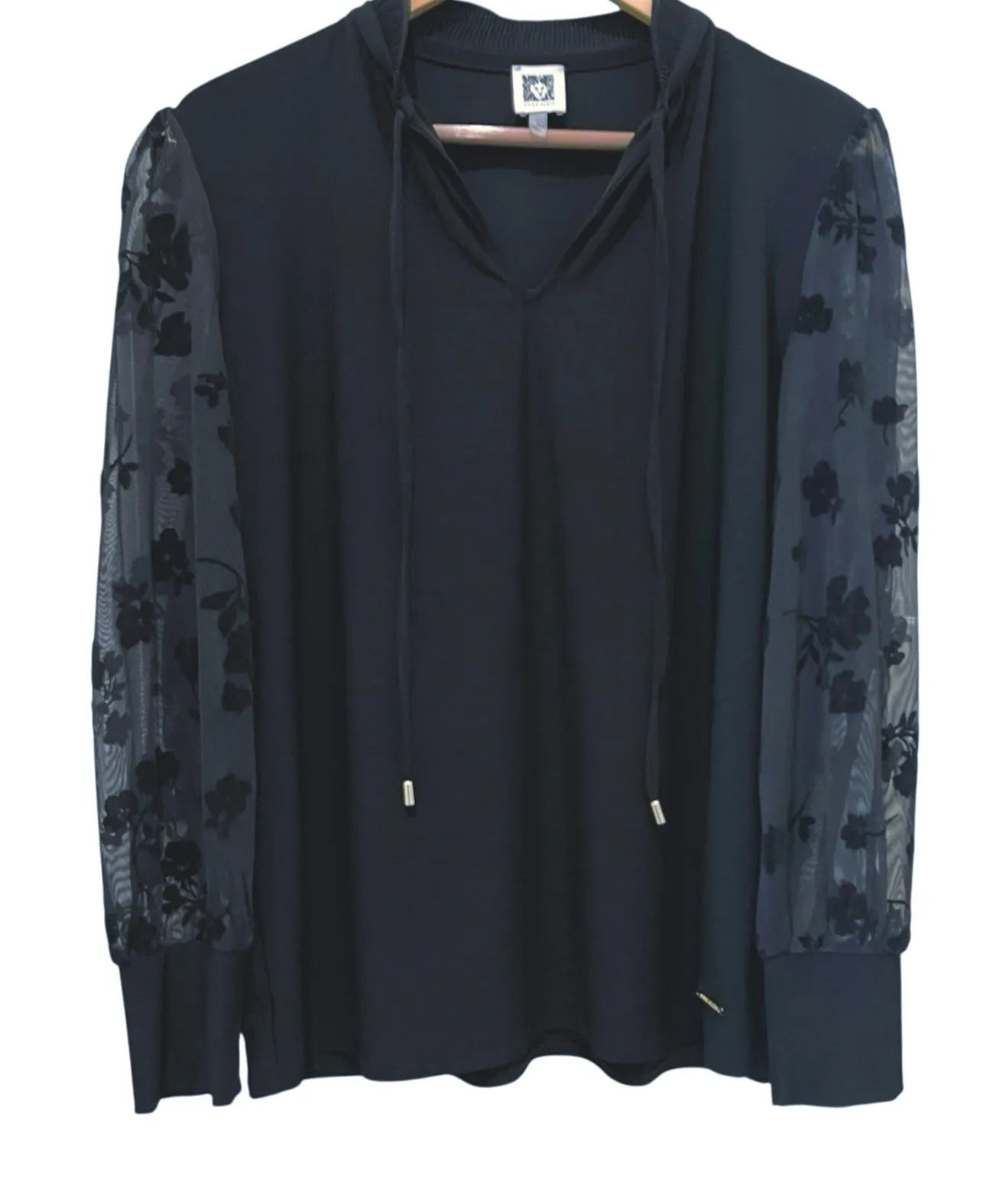 Preowned in excellent condition Beautiful blouse top with lace accent sleeves V Neck with ties Size... Show more