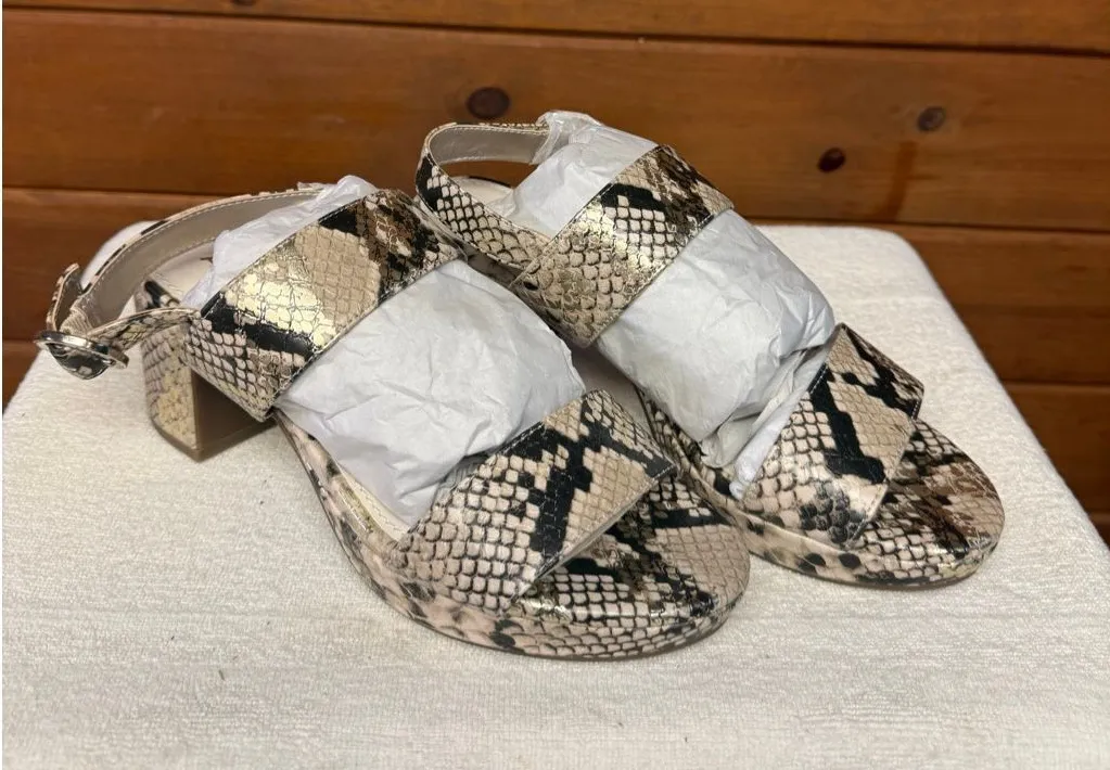 Anne Klein faux leather snakeskin block heel sandals Sz 7.5 NIB