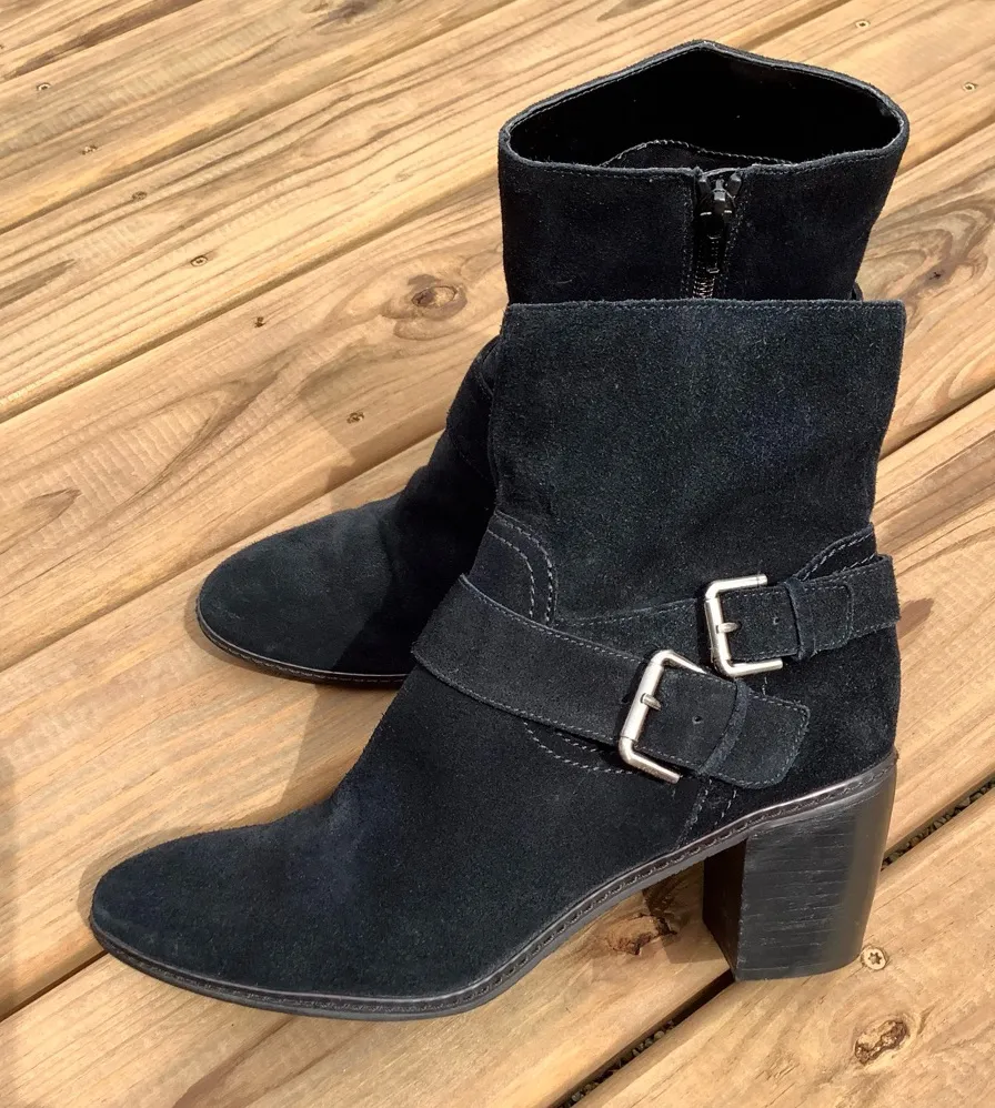Stylish casual booties on under 3β block heels from genuine suede leather. Modern buckle details on... Show more