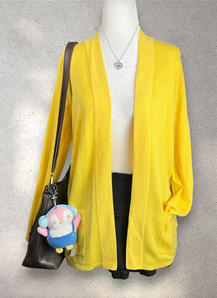 anne klein malibu yellow knit cardigan ✨ lightweight open-front cardigan in a bright sunny yellow wi... Show more