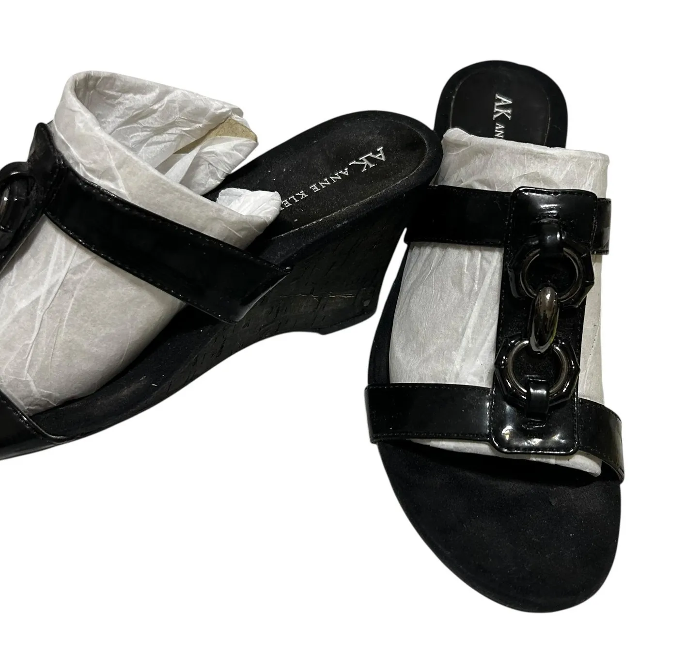 Anne Klein Shoes Womens 8M Black Wedge Patent Slip On Chain Detail Open Toe Condition: Please review... Show more