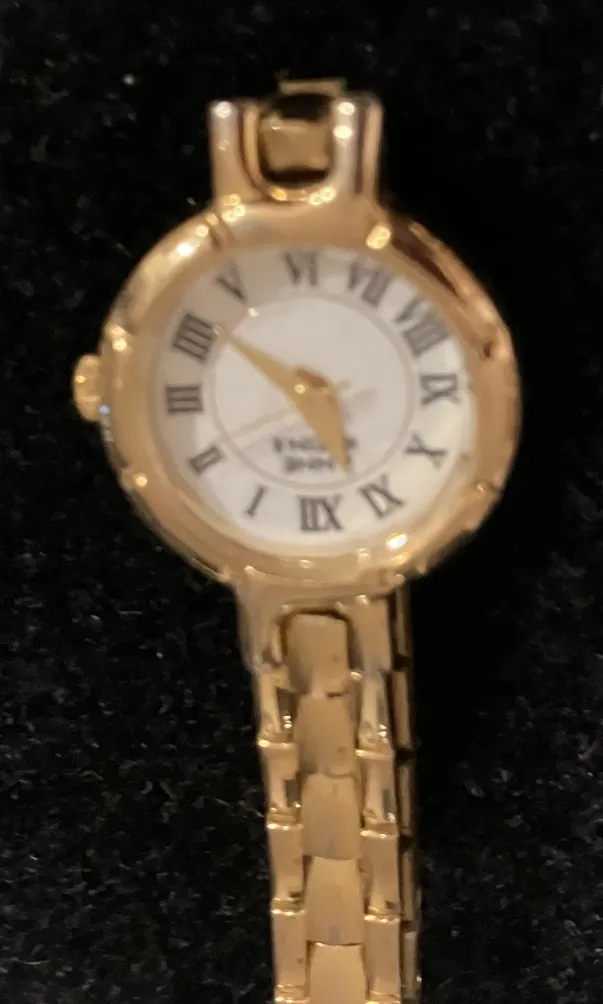 Elegant Anne Klein watch with a gold-tone finish. Features a classic round face with Roman numerals.