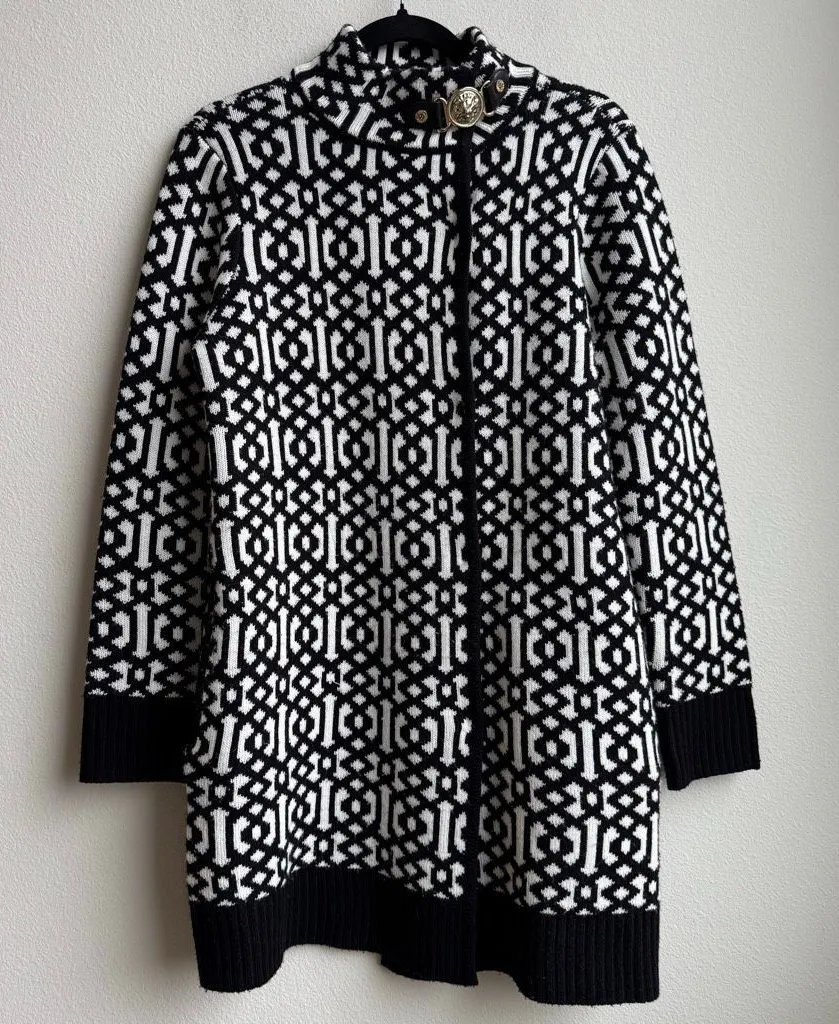 Heavier knit cardigan so can double as a coat, in overall good condition, has some light wash wear/p... Show more
