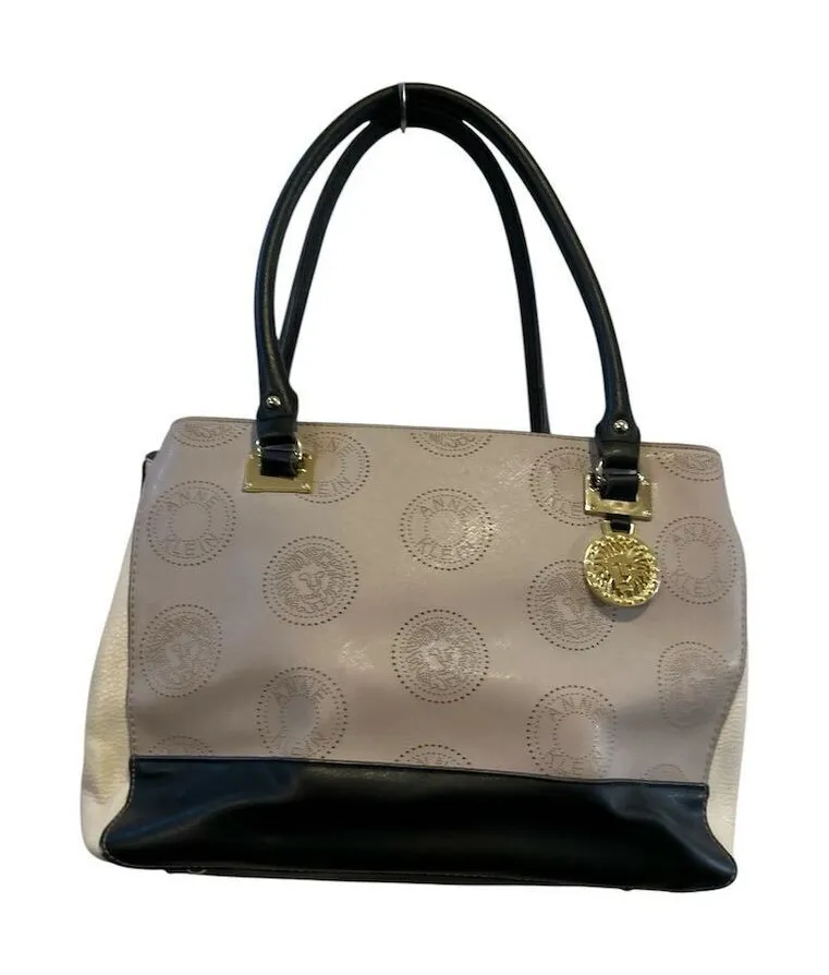 The Anne Klein tote is crafted from faux leather and features a stylish black and beige monogram pat... Show more