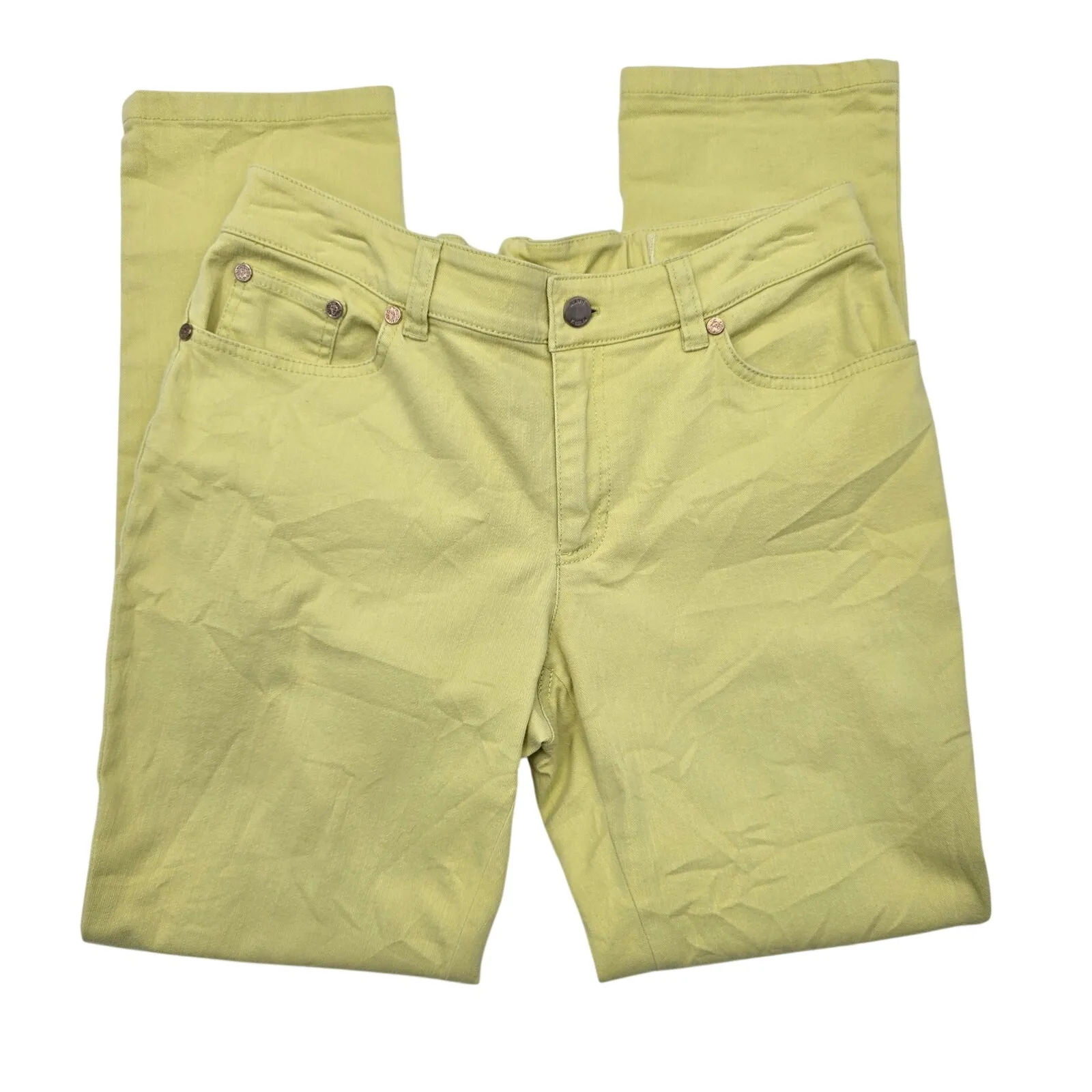 Anne Klein Yellow Straight Skinny Green Denim Jeans Pants Bottoms Plus Size 14 Waist: 15" Length: 37... Show more