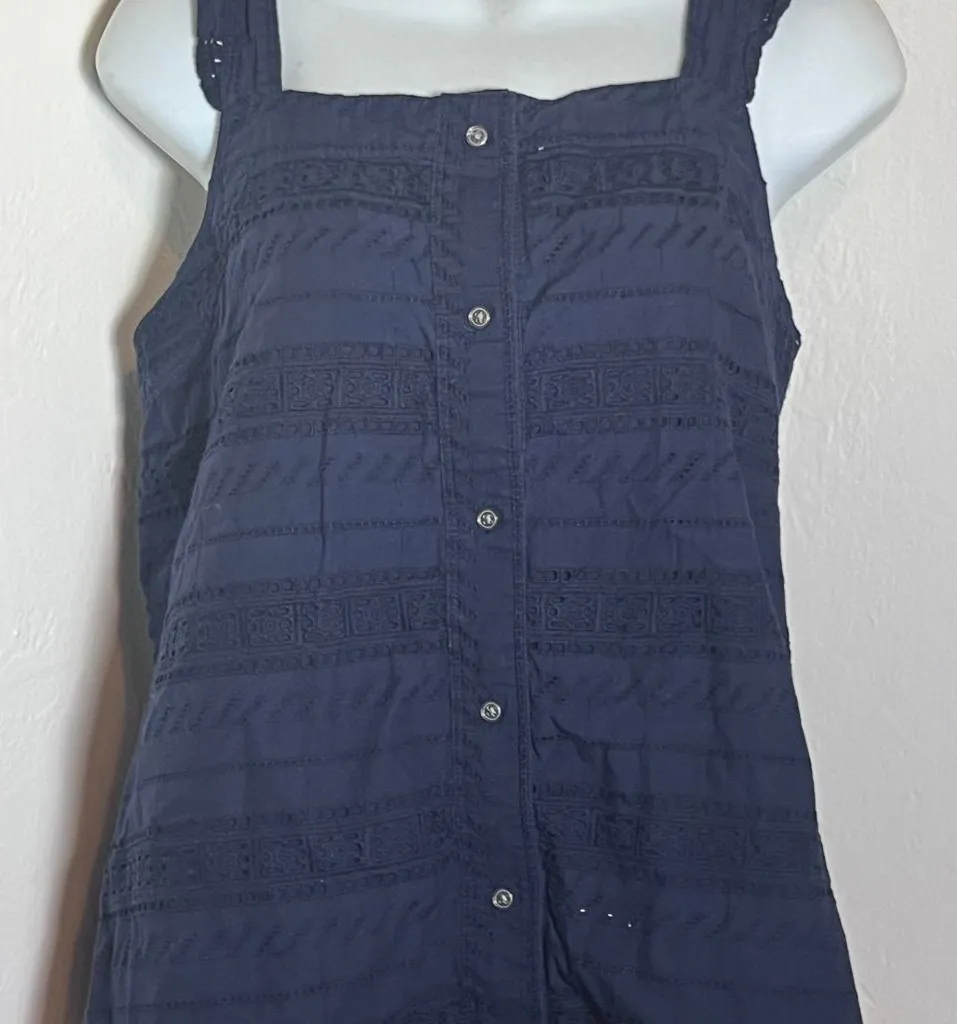 Anne Taylor Loft Top Large Navy Blue Cap Ruffle Sleeve Eyelet Top Cotton - $25 - From Oshe