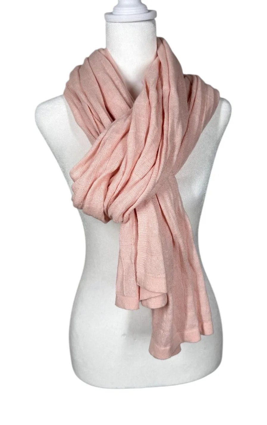 Condition: minor thread picks throughout. Please refer to photos to further evaluate condition. Description: - 100% organic cotton - Large scarf - Baby pink color Offers welcome. Thank you! Tags: Natural Sustainable Organic Crunchy