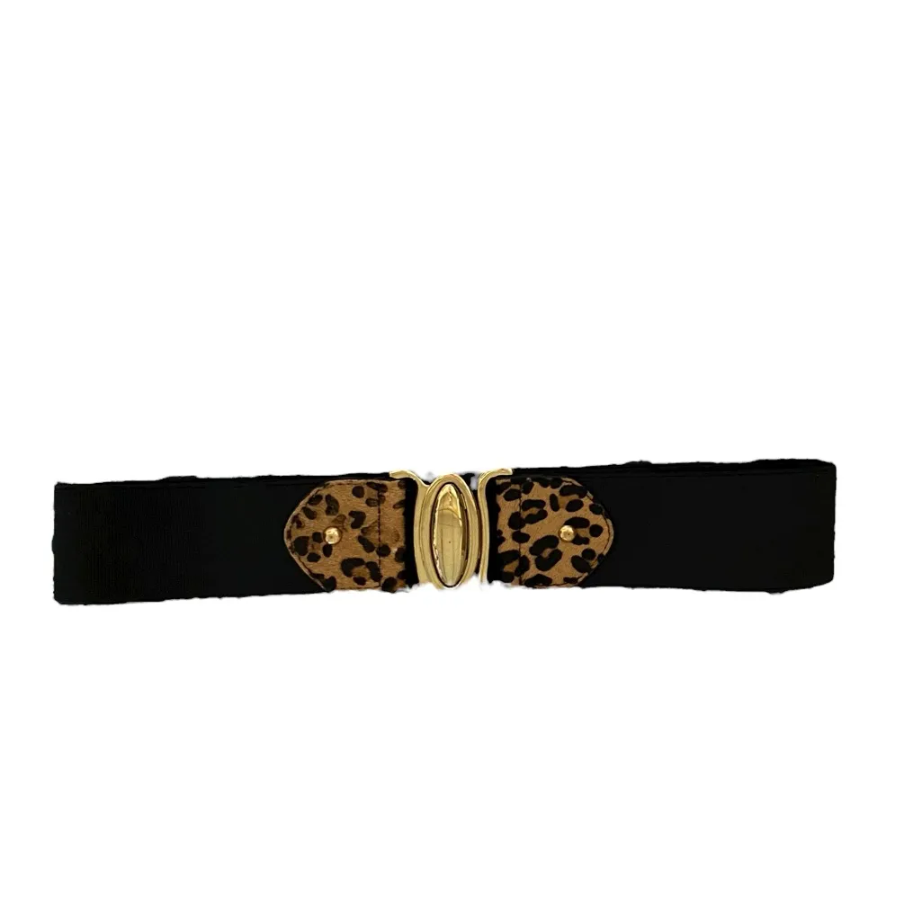 Another Line Leopard calf hair leather black elastic band Belt Gold Clasp szS/M - $26 - From Josie