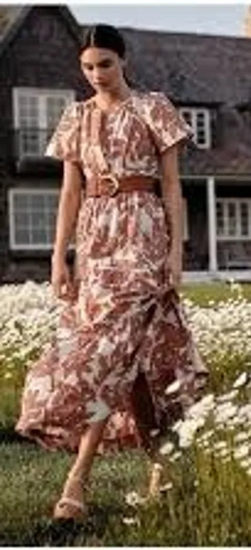 Anthropologie Somerset Maxi in Neutral Dotted Floral Cotton Tiered Dress Approx. Measurements Laying... Show more