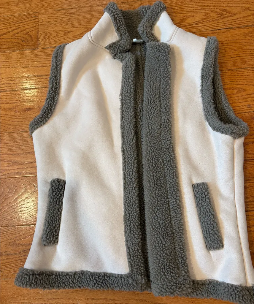 Features: • Brand: Akemi + Kin • Size: O/S (one size) • Color: Cream / off-white with gray sherpa... Show more