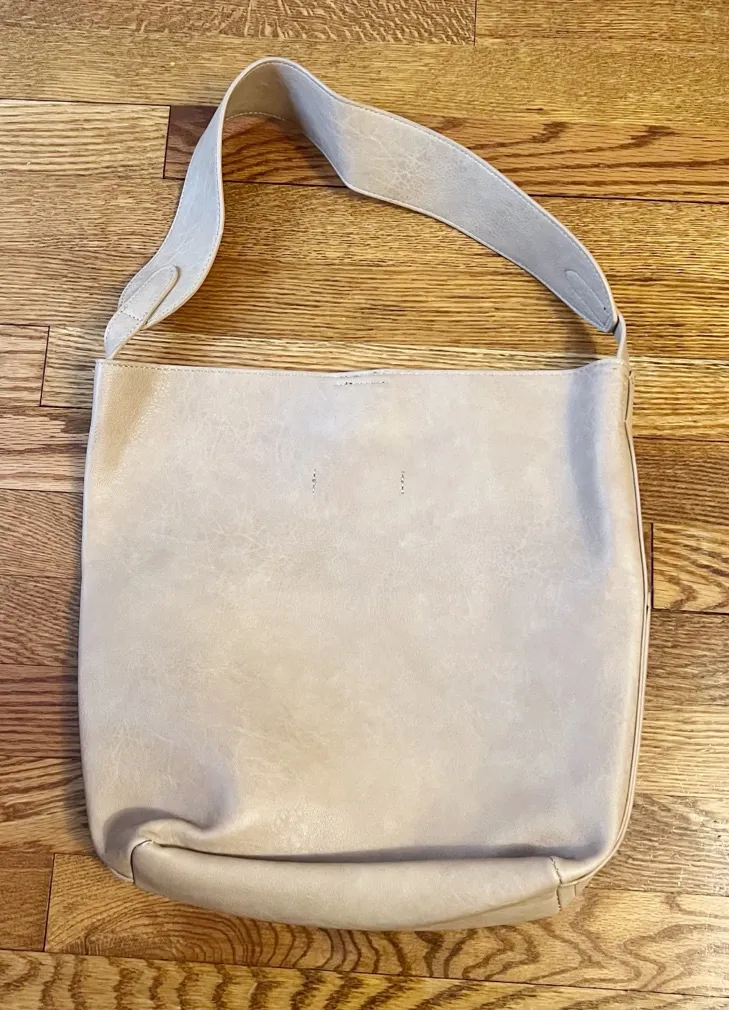 Excellent condition. Beige bucket bag. Shoulder strap. Faux leather fabric. Large open interior. Mag... Show more