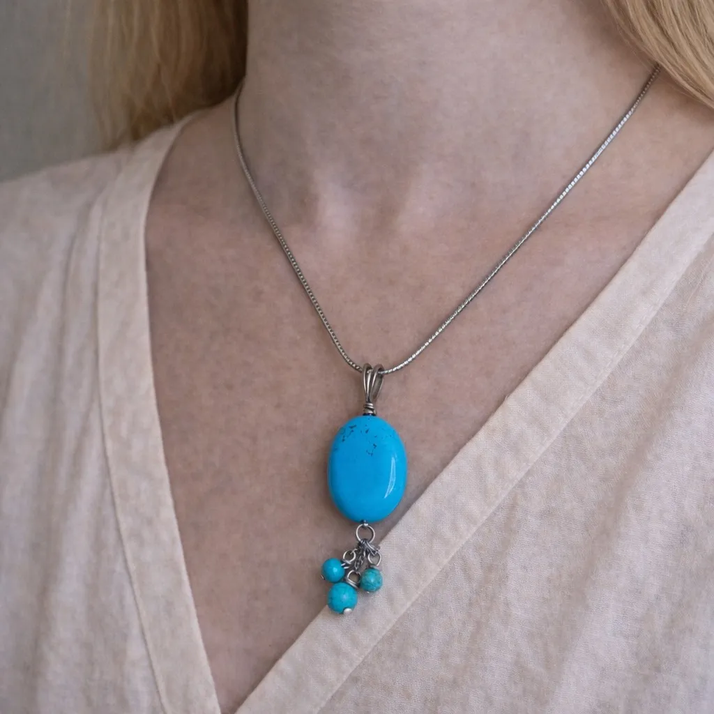 Anthropologie Turquoise Stone Pendant Necklace with Beaded Dangle | Boho Silver Chain Necklace ⸻ D... Show more