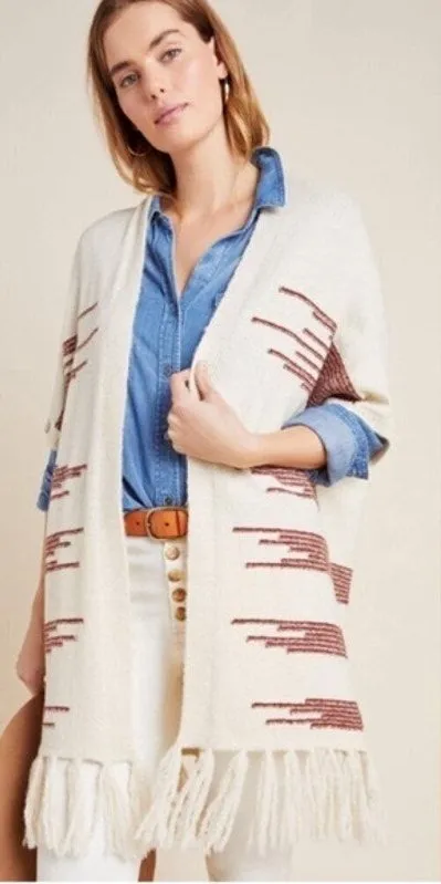 ANTHROPOLOGY Akemi + Kin Western Boho Fringe Open Front Cardigan Sweater OS Color: white brown Size... Show more