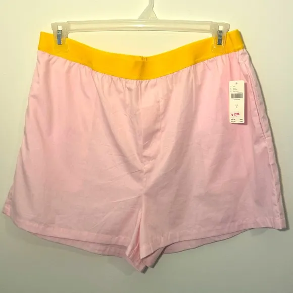 Stylish pink shorts with a vibrant yellow waistband. Tags: anthropology, pink, yellow, shorts, cas... Show more