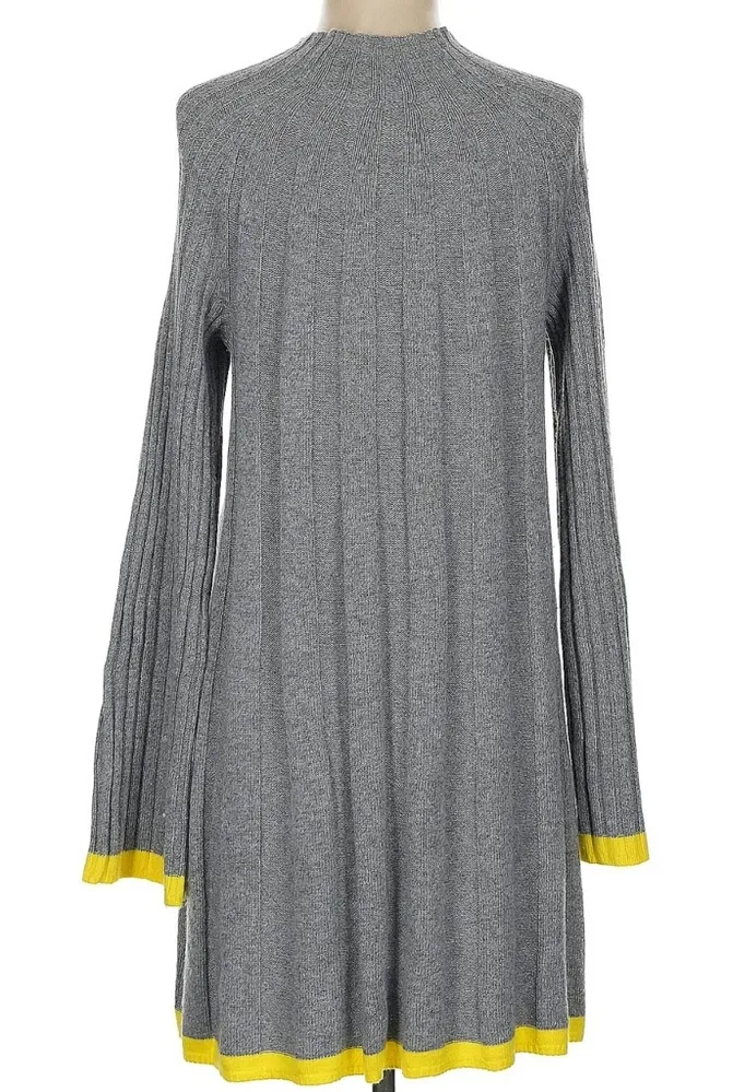 Stylish gray sweater with vibrant yellow accents. Ideal for a chic and cozy outfit. Pullover style,... Show more