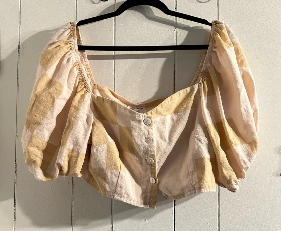 Anthropologie Beige and Tan Women's crop top puffer sleeve White Size M - $40 - From Kendra