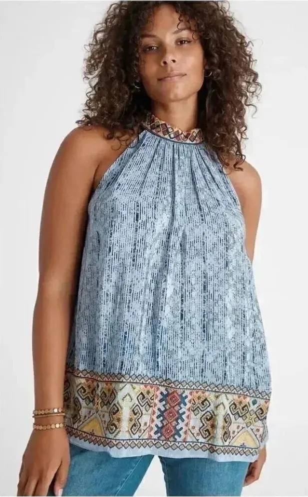 Anthropologie Bhanuni by Jyoti Jina Blue Halter Gypsy Festival Beaded Embellished Embroidered Viscos... Show more