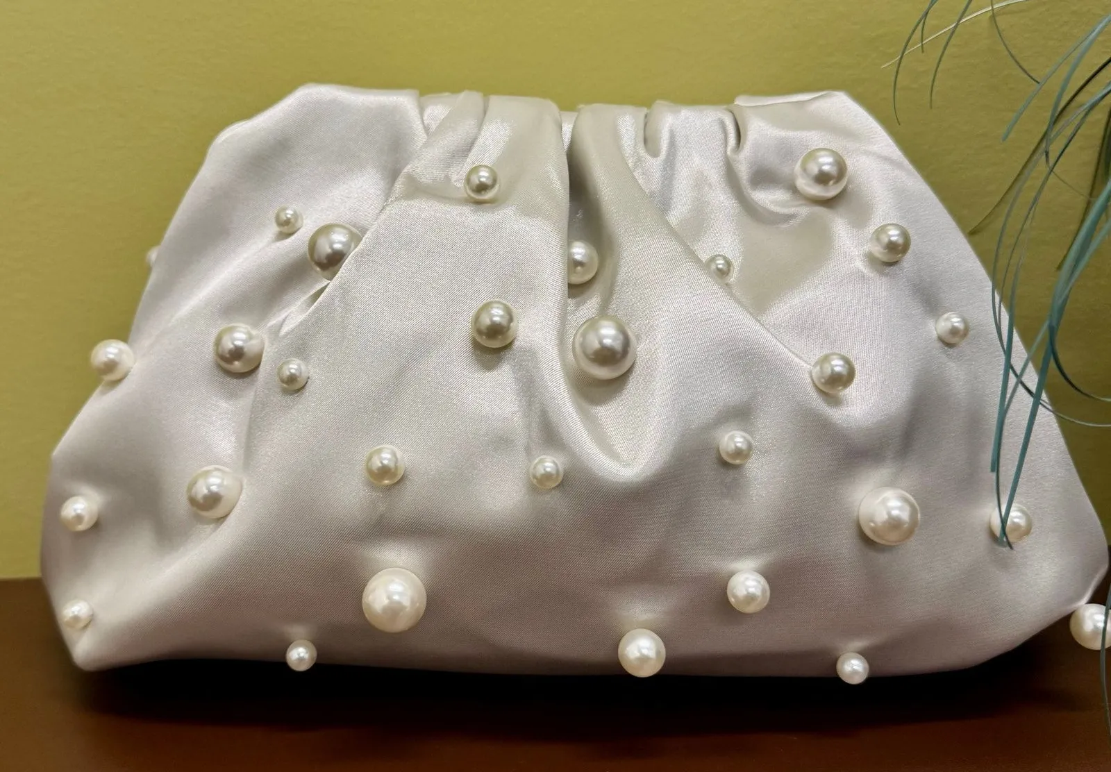 Satin Frankie Clutch white Pearls by Anthopologie Weddings / BHLDN new without tags - I purchased a... Show more