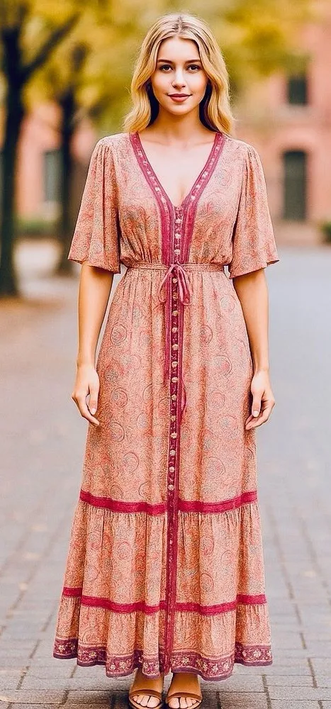 Anthropologie Boemo Floral Maroon Bohemian Boho Maxi Dress Petite medium. In great pre-owned condit... Show more
