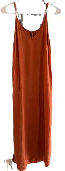 The Anthropologie Burnt Orange Midi Slit Dress is a stylish and flattering option for women looking... Show more