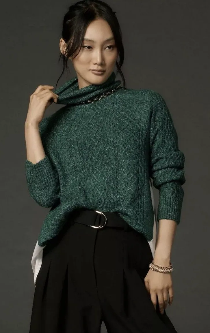 Anthropologie Cable Knit Sweater Womens L Green Layered Mixed Media Size L - $27 - From Nidia