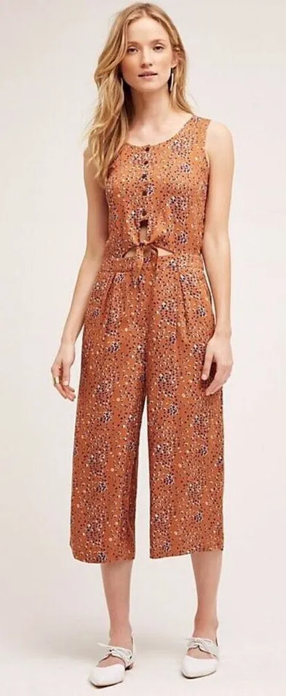 ✨Anthropologie Cartonnier Avila Patterned Cropped Wide Leg Jumpsuit Size: XSmall Material: Ray... Show more