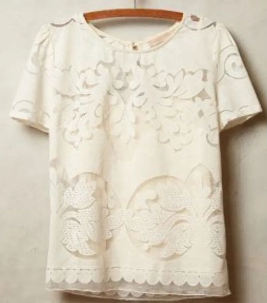 Anthropologie champagne & strawberry lace opacity tee top off white L bust36in Size 6 - $25 - From Abigail