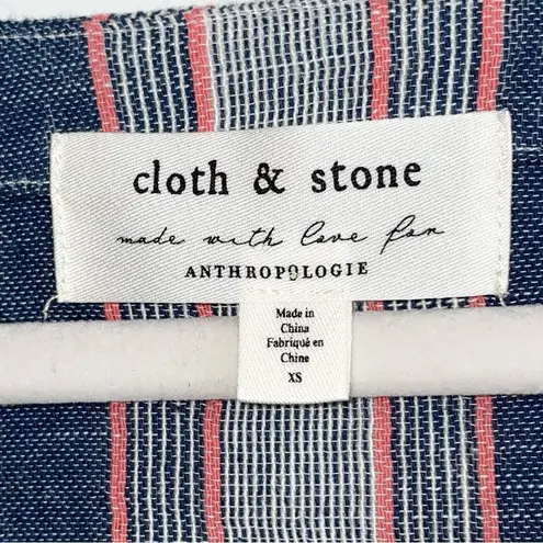 This Anthropologie Cloth & Stone chambray striped peasant sleeve blouse has a beautiful striped desi... Show more
