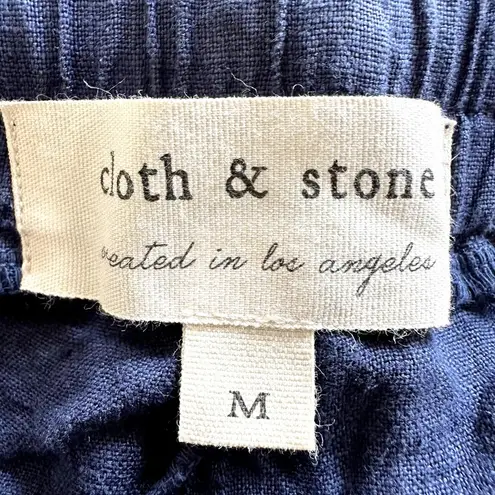 Cloth & Stone Straight Leg Pants Drawstring Closure Linen Raw Hem Pockets Navy Blue Medium