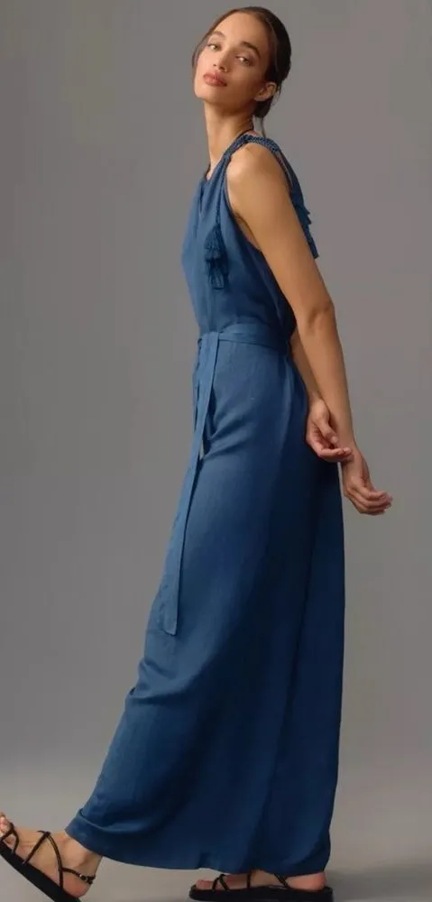 Anthropologie Cory Lynn Calter blue linen blend tassel wide leg‎ jumpsuit XXL - $110 - From Alexandra