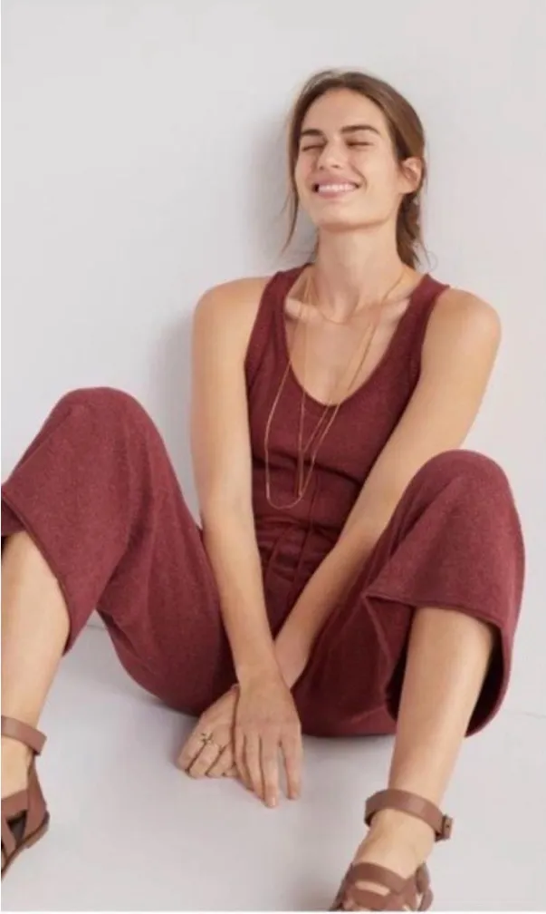 Daily Practice by Anthropologie cropped knit jumpsuit in a rich dark auburn color. Soft, stretchy, a... Show more