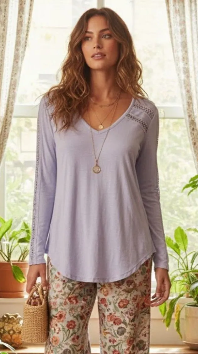 Anthropologie Deletta Lavendar Purple Lace Line Crochet Sleeve Top Size Small - $25 - From Shelby