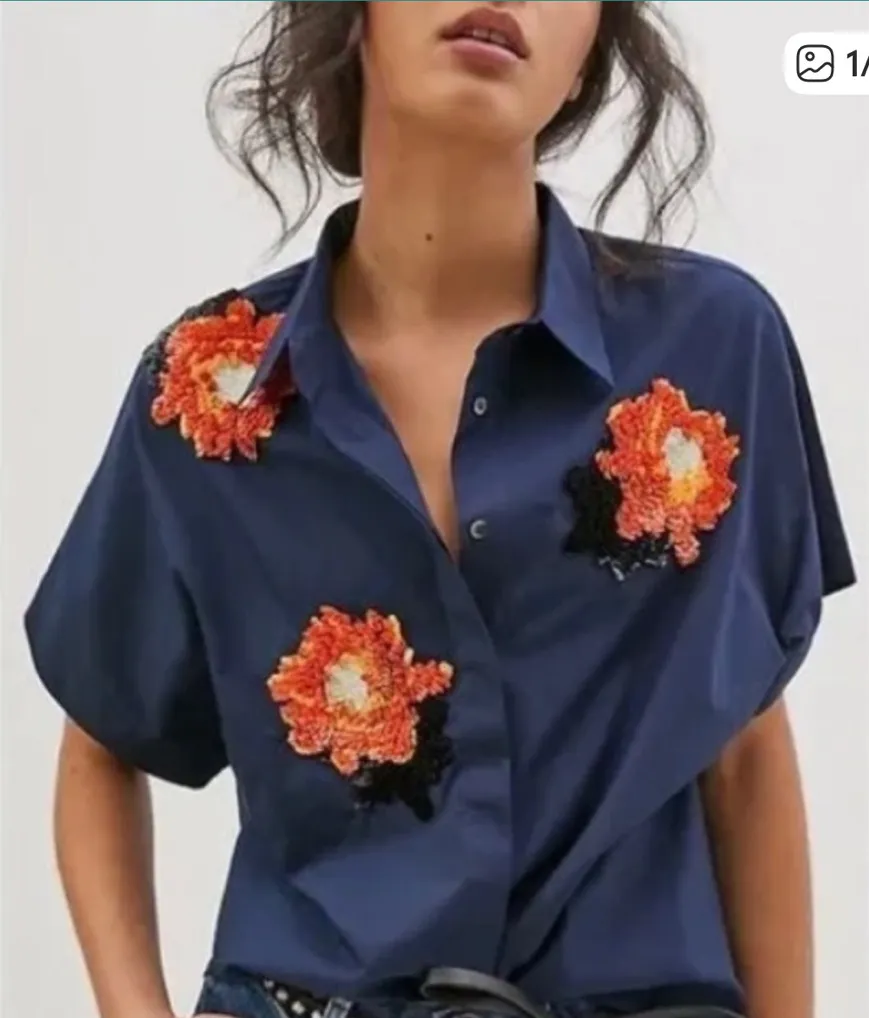 Anthropologie Dhruv Kapoor Floral Beaded Button down Shirt Size XS Blue - $35 - From Leslie