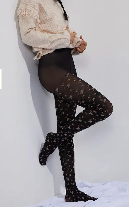 Diitsy Floral Black Opaque Tights by ANTHROPOLOGIE Hansel From Basel Floral Opaque Tights Small The... Show more