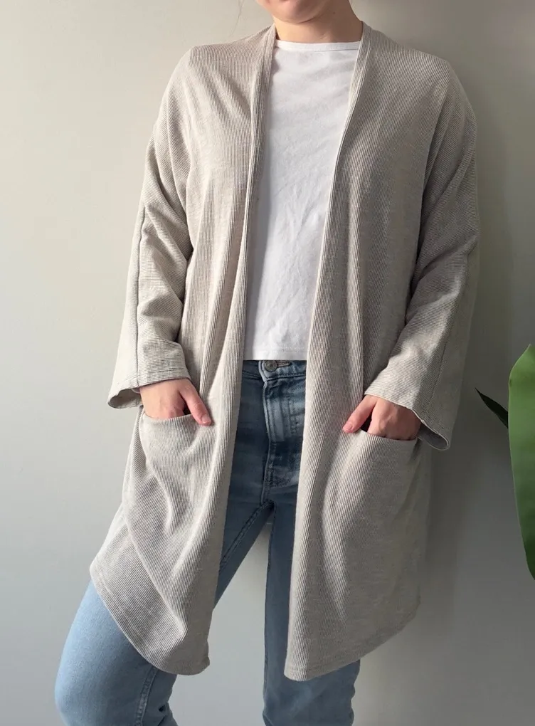 Stay cozy and stylish with this light gray open front cardigan sweater. Perfect for layering, it off... Show more