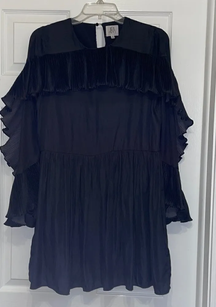 Anthropologie dRA Los Angeles Black Pleated Ruffle Mini Dress, size XS. Excellent used condition. Th... Show more